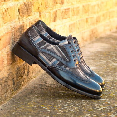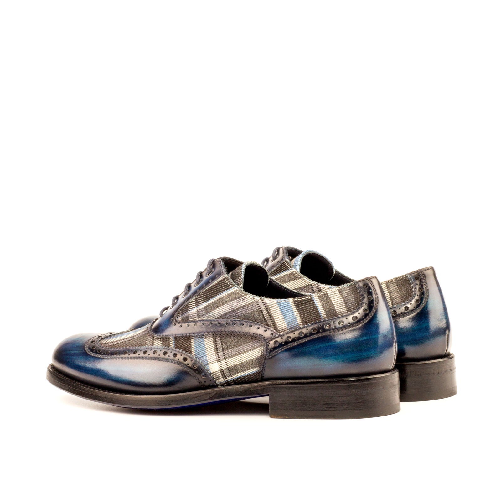 - Materials: Plaid Sartorial Fabric + Denim Patina Calf Leather.